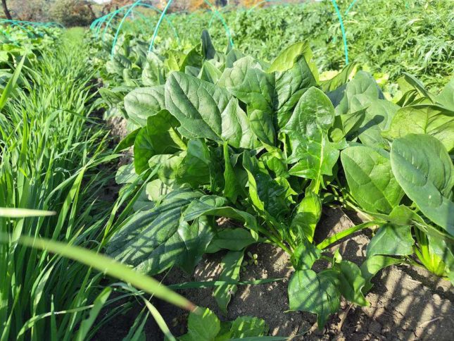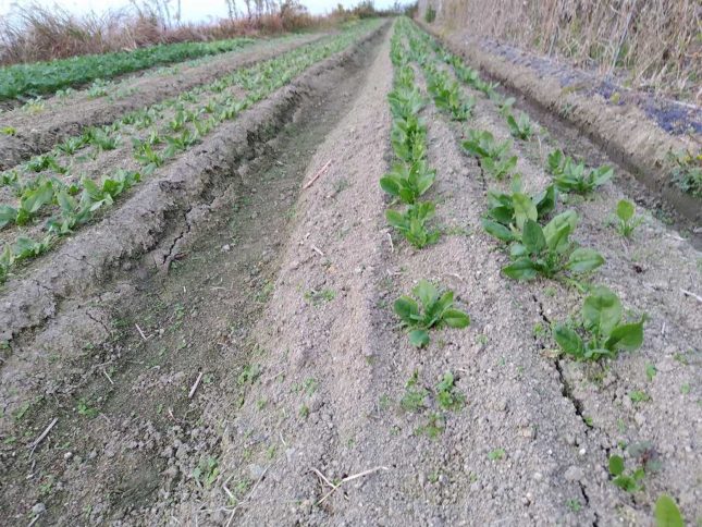 上の写真はほうれん草。いい感じです。この畝が採り終わるまで後1,2週は続けて入る予定です。