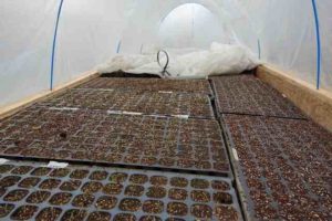 だんだん育苗ハウスが苗で埋まりつつあります。