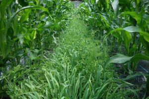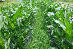 このタイミングで、緑肥を刈り取れば、一気にトウモロコシの方に栄養が行くんじゃないかなと、それがトウモロコシの実を太らすのではと思いつつも、アワノメイガ対策で草生帯を残して、天敵の住処を確保しとくべきかと思案中です