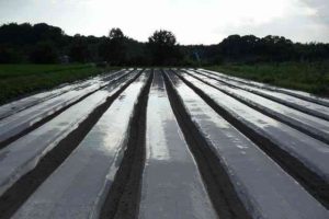 先日、軟弱野菜の予定地に太陽熱除草の為のマルチを完了しました。