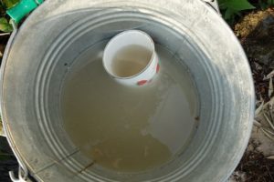牡蠣殻を水で溶いて、その上澄み液を使います。