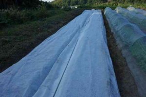 大根、水菜、白菜、ルタバガ、ビーツ等など。種を蒔いては、防虫ネットで覆ったり、遮光シートを掛けたり。