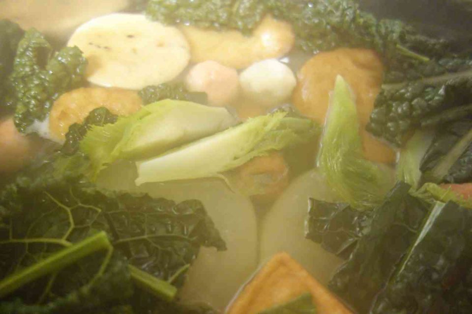 そこで日本風にと「おでん」で食べてみると案外いけます
