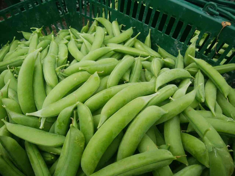 スナップエンドウ、ウスイ、空豆の3種が重なって採れてます