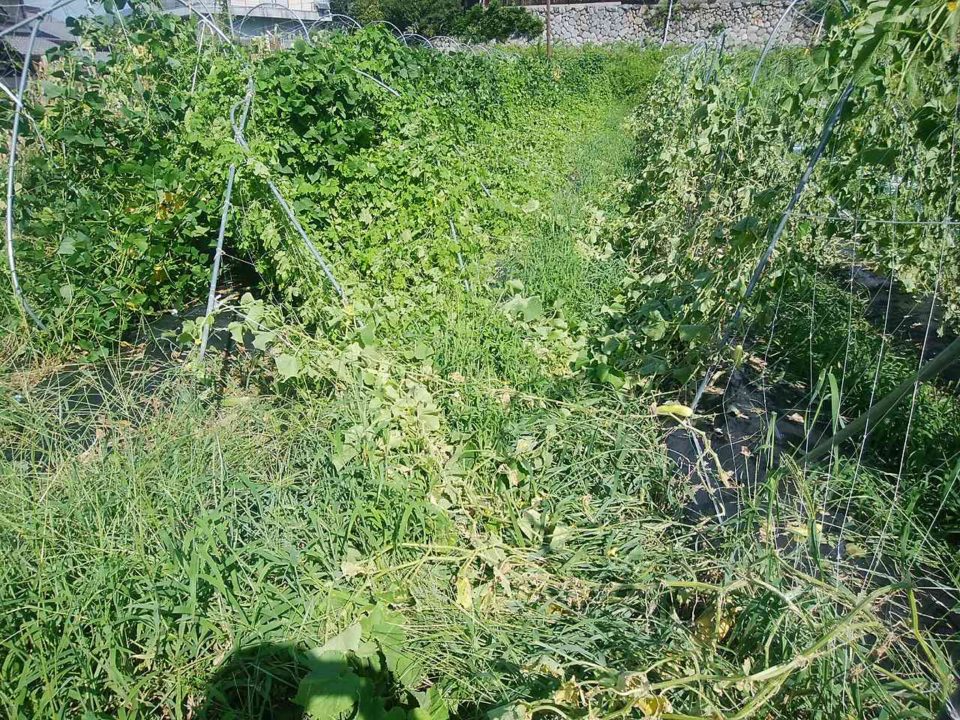 しかし、コケたゴーヤや四角豆をどうしたもんか?パイプが折れてしまってるので元通りにはなりません。現在は上の写真の状態でおいて、収穫できる物を収穫してる状態です。
