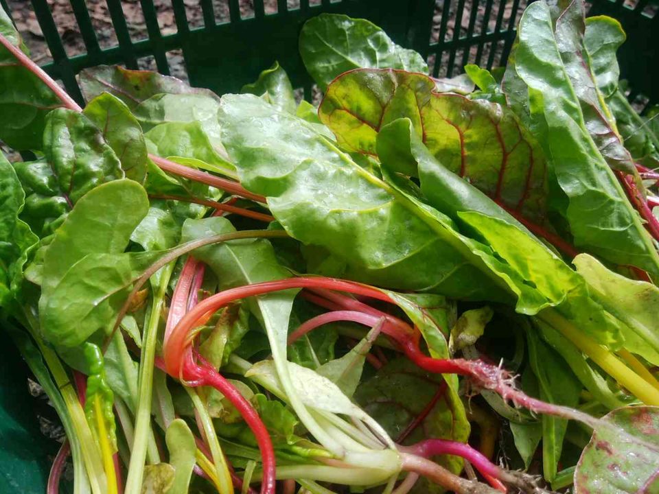 今週はスイスチャードが入ってます。これまで沢山は育ててこなかったのですが、今年は種を1dl買ったのでガンガン蒔いてます。これまでは種代が高めの野菜なんで育苗してたんですが、それもやめて直播です。発芽率が心配だったのですが9月は雨が多かったおかげでほぼ育苗した時と同じくらいの発芽率でホッとしてます。