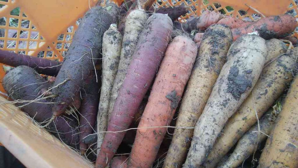 今週はカラフル人参です。白、黄、紫、オレンジの4色中からミックスして入れてます。