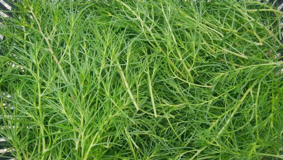 ただ、ちょっと弊害も。おかひじきは下の部分は結構硬いです。ポッキと手で折れる所までか柔らかくて美味しいところです。鎌で一気に収穫してるので、なるべく上の方だけ収穫してるけど硬めの部分も少し入ってます。