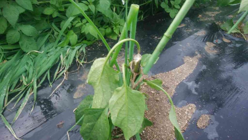 仮支柱はしてたんですが、そこまで強風が吹くとは想定してないので、ピーマンやナスが結構折れてしまってます。