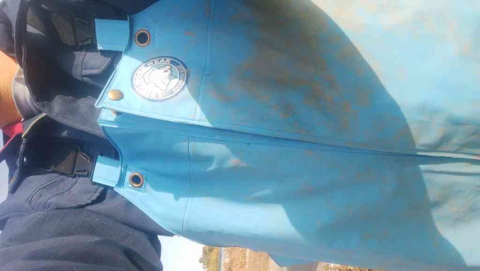 今年は冬の仕事着を新しくしました。秋、冬は収穫作業が結構汚れるんです。朝露でビショビショだったり、大根とか葉を落とすときに土付きのまま抱えたりと。以前は上下分かれた合羽を着てたのですが、今年からはサロペット。