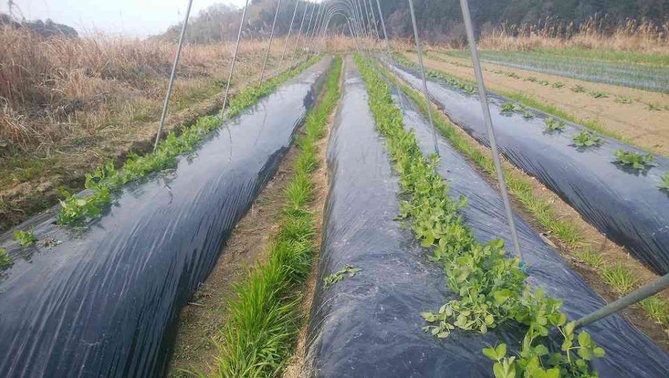 そして、遅れてたエンドウのネット張りもしないとね