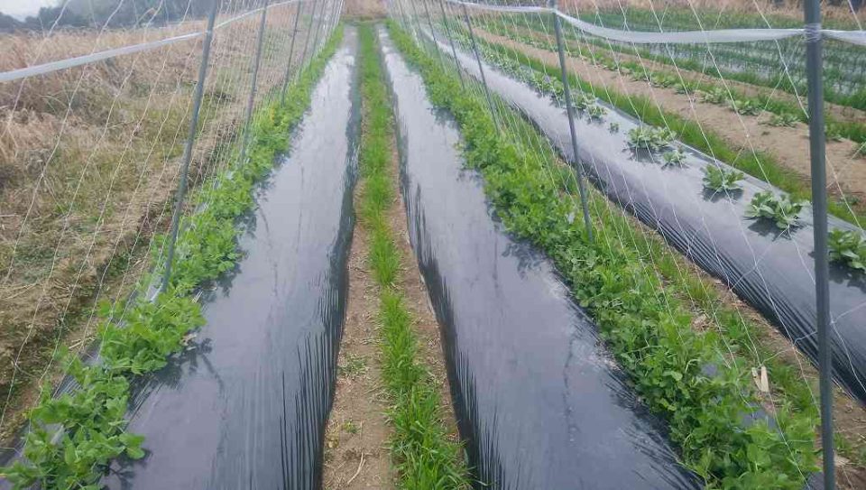 そら豆は、マルチ有りと無しで生育比較中。マルチ有りの方が地温が確保されるのか最育が早いです。収穫開始時期がうまくズレてくれるとありがたいな。