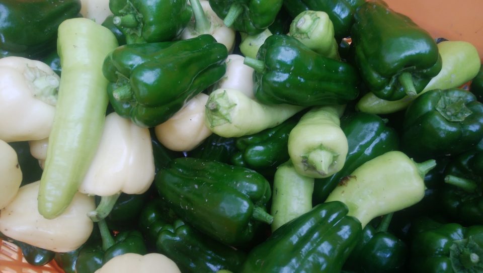白色のピーマン 今年初栽培です。新しい彩りになるかなと試験栽培。育てやすさ、収穫量、味等を確かめてます。