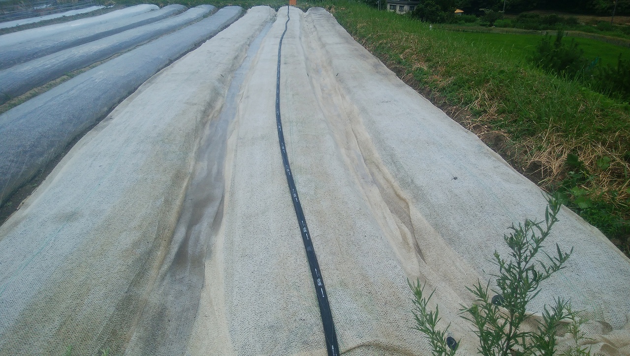 人参の発芽が年々難しくなってるので、遮光ネットに散水チューブという体制で最近はやってます。10年前はまだ、軽く水やりだけで何とかなってた気がしますが、ここ数年は過保護過ぎる位に水やりしないと芽が出ない感じです。