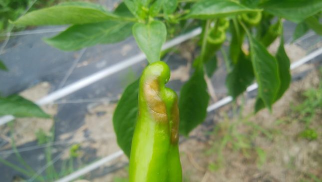 ピーマン系の野菜に尻腐れの症状が出てます