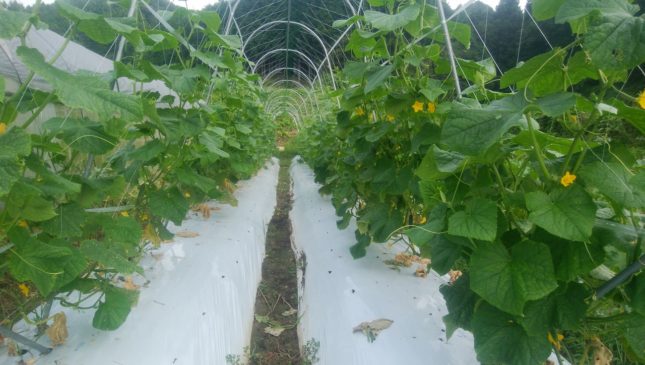 野菜セットの方は最後にタネを蒔いたキュウリが採れ始めてきました。9月一杯かもう少し先か、また野菜セットにキュウリが入り始めます。最後のキュウリは、四葉キュウリじゃなくて普通のキュウリです。四葉キュウリを9月採りで何年か試したんですが、病気に弱いせいか成績が良くなかったです。9月採りのキュウリはここ何年かは病気に強い品種を選んで栽培してます。
