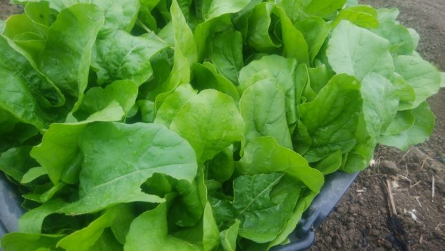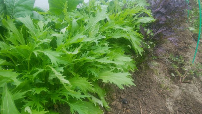 サラダ系の葉物もだいぶしっかりとした生育になってきました。9月上旬ごろからお届けはしてるけど、その頃の葉物は気温が高いので生育スピードが早くて、弱々しいです。今は適度な生育速度でこのくらいがベストかなという気がします。