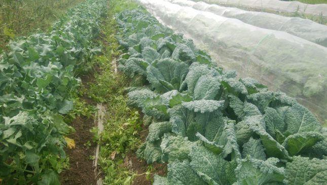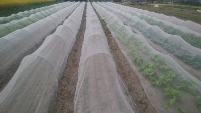 上の写真は畑の様子。農園の畑は何処もこんな感じで防虫ネットに覆われてます。寒くなってきたのでようやく剥がし始めました。
