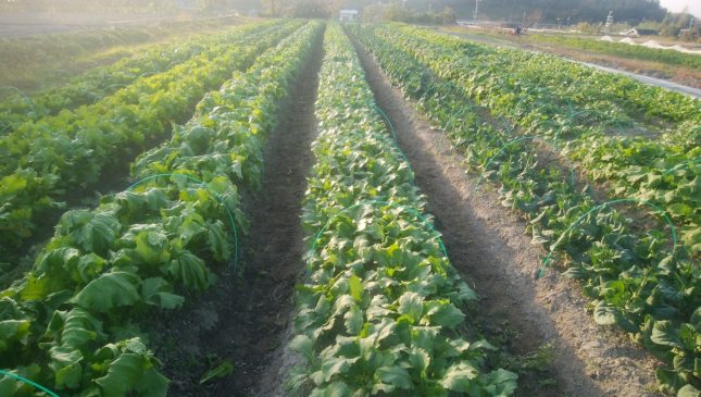 蕪は間引き菜です。根の部分は1,2cm程度でメインは葉っぱです。まだ小さい時期の蕪の葉なので柔らかく美味しいです。小松菜みたいな感じで調理できます。11月は間引き強化月間です。間引きしながら野菜を大きくしていきます。