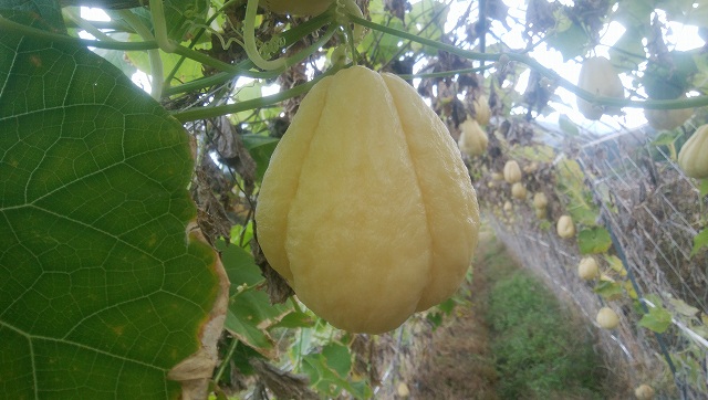 寒くなると果菜類(ナス、ピーマン、きゅうり等)は採れないんですが、最後に採れるようになるのがハヤトウリで、果菜類のない時期の貴重な野菜です。