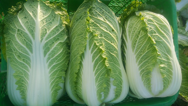 農園始めた頃は10月収穫も狙って栽培してたんですが、年々虫害が酷くなるもんだから遅くしていくうち年明けの収穫になりました。白菜の栽培はなんとも苦手です。写真の白菜も本来はもっと大玉になる品種なんですが、肥料が少ないので大きくならずの小~中玉サイズです。この辺は意図して栽培なのでこれで有りだと思ってる部分もあります。切らずに箱に入れれるので。