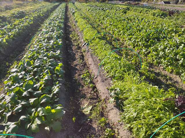 11月に入ったので防虫ネットを剥がしてます。今日も20度くらいまで気温が上がってまだ虫が飛んでて心配です。でも葉が防虫ネットにあたって窮屈そうだったので、剥がしました。多少虫食いありますが、全体的にはキレイな仕上がりでホッとします。時間かけて丁寧に防虫ネット張ったかいがあります。無農薬栽培の農家にとっては唯一かつ最後の砦が防虫ネット。農薬に頼れない分、物理的に防御です。防虫ネット無しで栽培できないかというと、できたりできなかったりと不安定。農園初期の頃は無しで育ててる野菜も多かったのですが、安定性にかけるし安定出荷の為に少しでもリスクを減らしたいので、秋冬の葉物系はほぼフルで防虫ネットをかけてます。