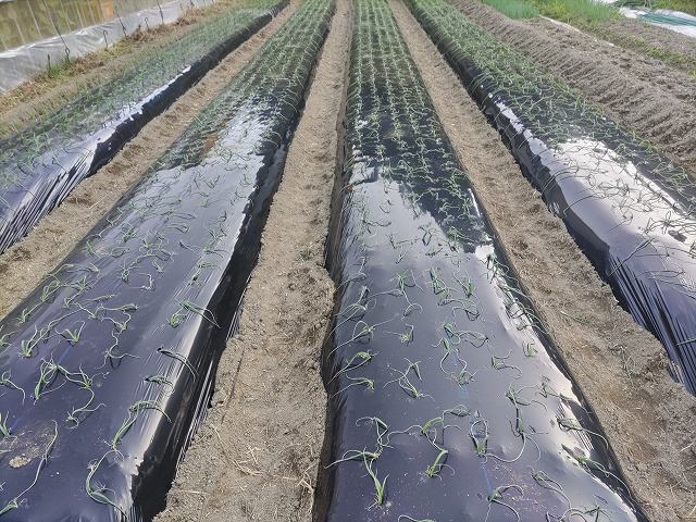 上の写真は玉ねぎの植え付け後です。今日の雨に合わせて週末月曜と頑張って植えました。フニャッとなってますが、今日の雨で活着するはずです。