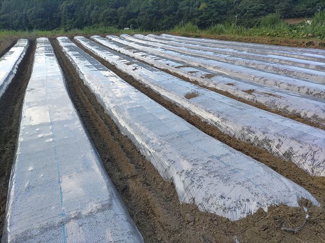 上の写真は太陽熱除草中の畑です。今や有機農家にとって必須の技術といっていいはず。この暑さを利用して草の種を熱死させます。今は秋冬作に向けてひたすら太陽熱除草をしてます。これがバチッと決まると秋冬作は半分成功したもの、これが上手くいかないと除草に追われて、他の作業が遅れてと悪循環に陥る可能性が大きいです。
