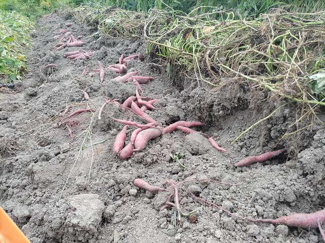 さつまいも掘り始めてます。早太りの品種からなので少しだけですが。さつまいもは掘りたては甘くないので、少し貯蔵してからの届けです。
