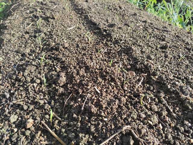 人参の芽が揃いました。今年は蒔き直しを何度もしてのようやくです。果たして冬に太るのか、昨年まではお盆までに種まきを終わらすのですが、今年は発芽失敗が続き9/3種まき分が最終となりました。例年より2週間以上遅い種まきなのでちゃんと太るか、太る前に冬が来るか。発芽失敗の理由を考察してるんだけども気温が高すぎる事くらいしか思いつきません。こうなると8月末から9月頭が人参の蒔時となるのか?毎年、白色の遮光ネットで温度下げて対策してるので問題なかったのですが、今年はそれも効き目が無かったようです。後は気温高い時間帯は水をまき続けて温度さげるしかないかな?冬に人参無いのは痛いので、来年までに対策を考えねば。
