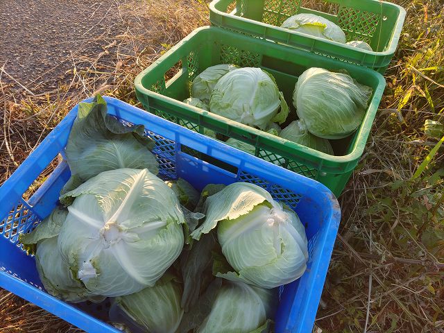 キャベツの収穫始まりました。安定の初秋という品種です。暑い時期の栽培なので中が黒くなってたりするので心配でしたが大丈夫でした。お昼に試食しました。食感がパリパリで美味しかったです。