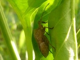 かぼちゃをの葉を食べていたウリハムシに比べると動きがのろいのでかなり捕まえやすいです。