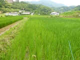 ちょっと大きめの写真なんですが、手前と奥とで稲の葉色が違うのがわかるでしょうか?