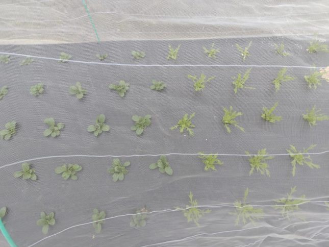 葉物類です。予定では3週間前後で収穫。葉物系の収穫の目処付けば今シーズンの宅配再開です