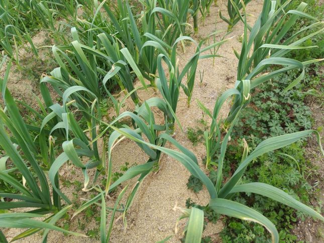 上の写真はにんにくです。いつもより良い感じだと思います。葉っぱも例年より大きい思います。病気でなければ期待できそうです