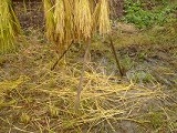 日記 無念。。。 2011.10.18 イノシシに入られて、全滅してしまいました。はざに干していたやつも、ひっぱられてこんな風にこんな感じで穂を食べてしまわれてます。残念。冬になったら肉にして返してもらわないと