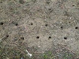 オクラを切り倒して草もきれいにして、こんな感じで穴を空けていきます。